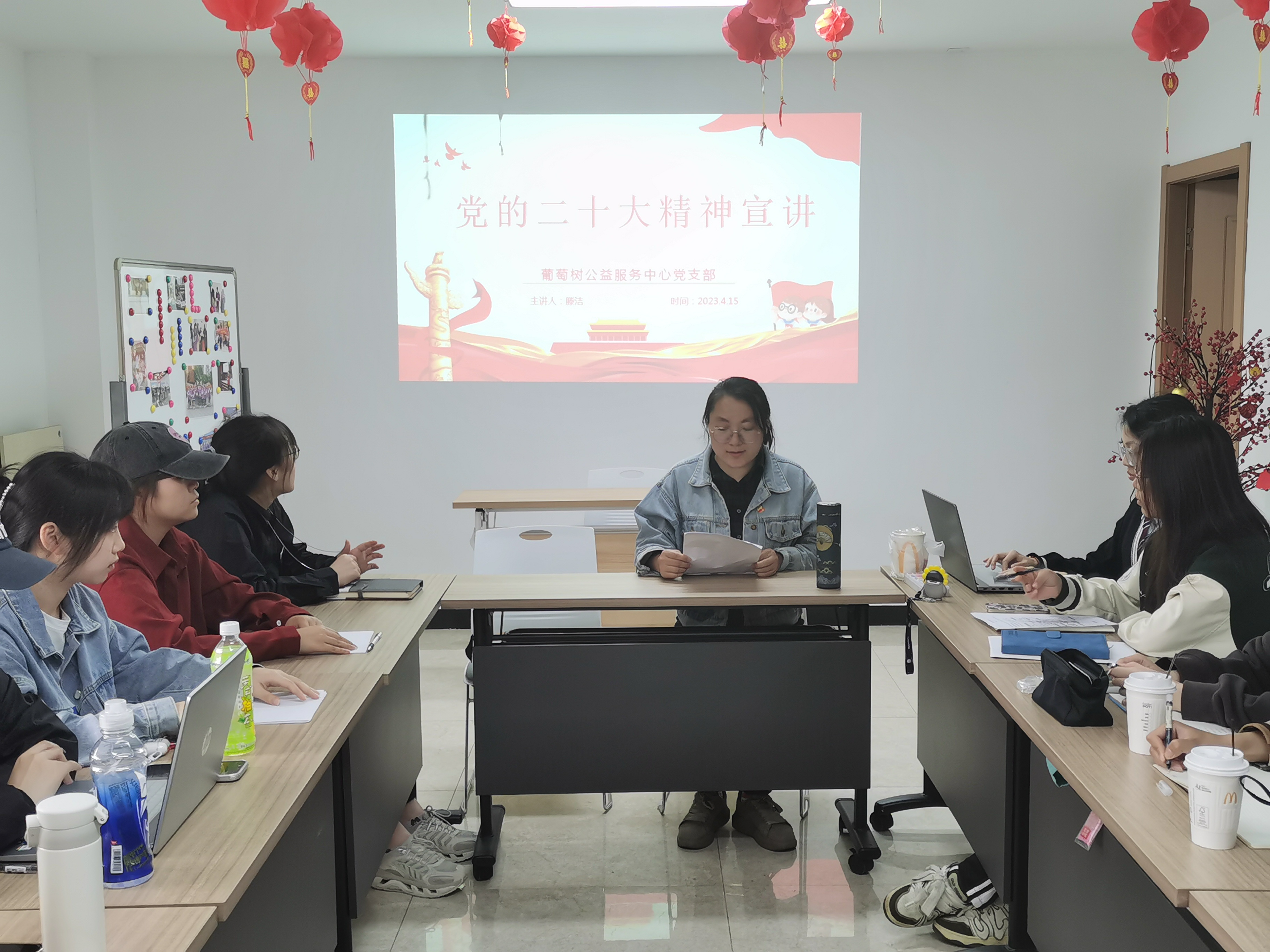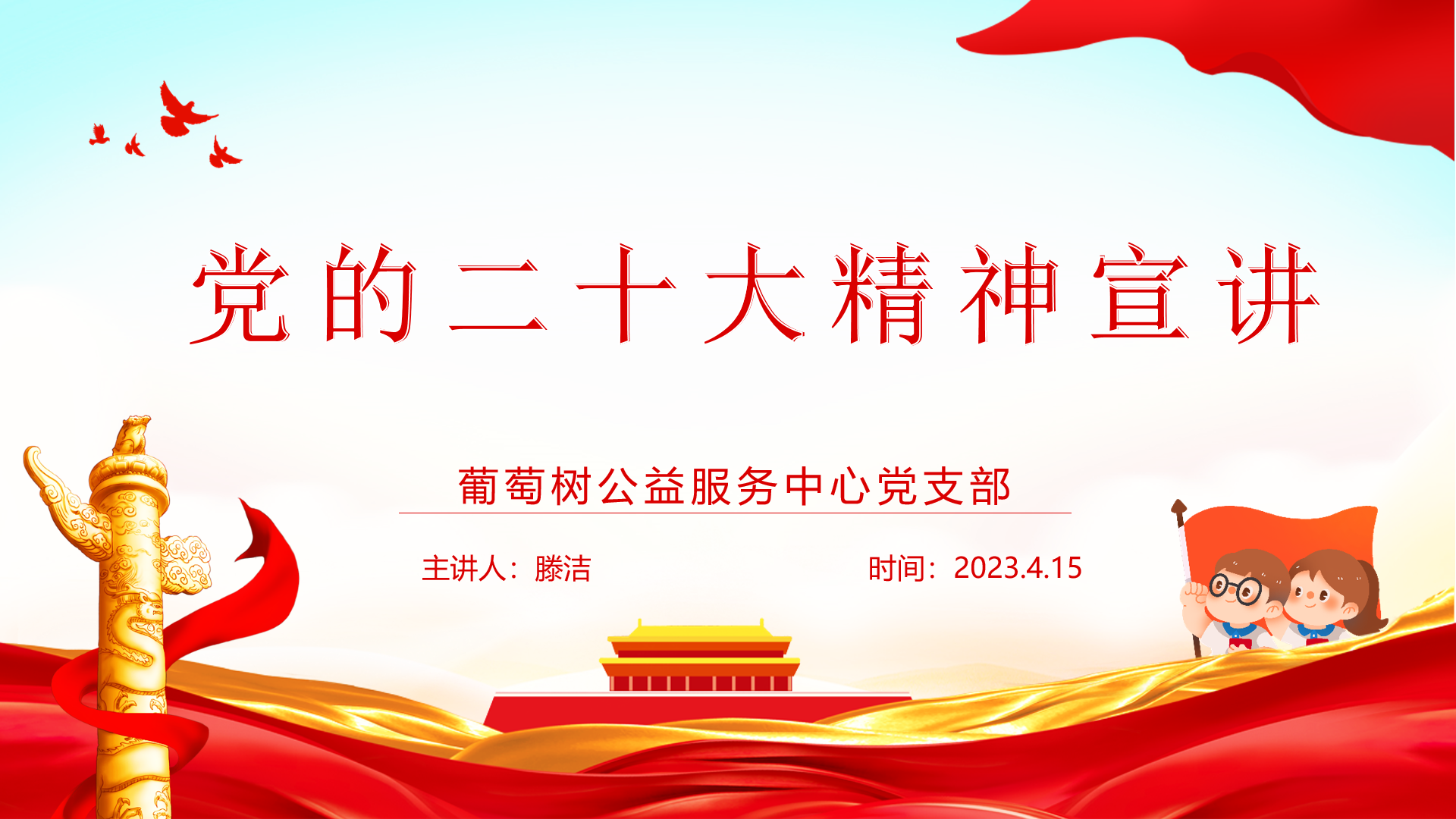 2023年4月15日,葡萄树公益服务中心党支部、葡萄树公益服务中心工会共同举办了“党的二十大精神”宣讲活动。