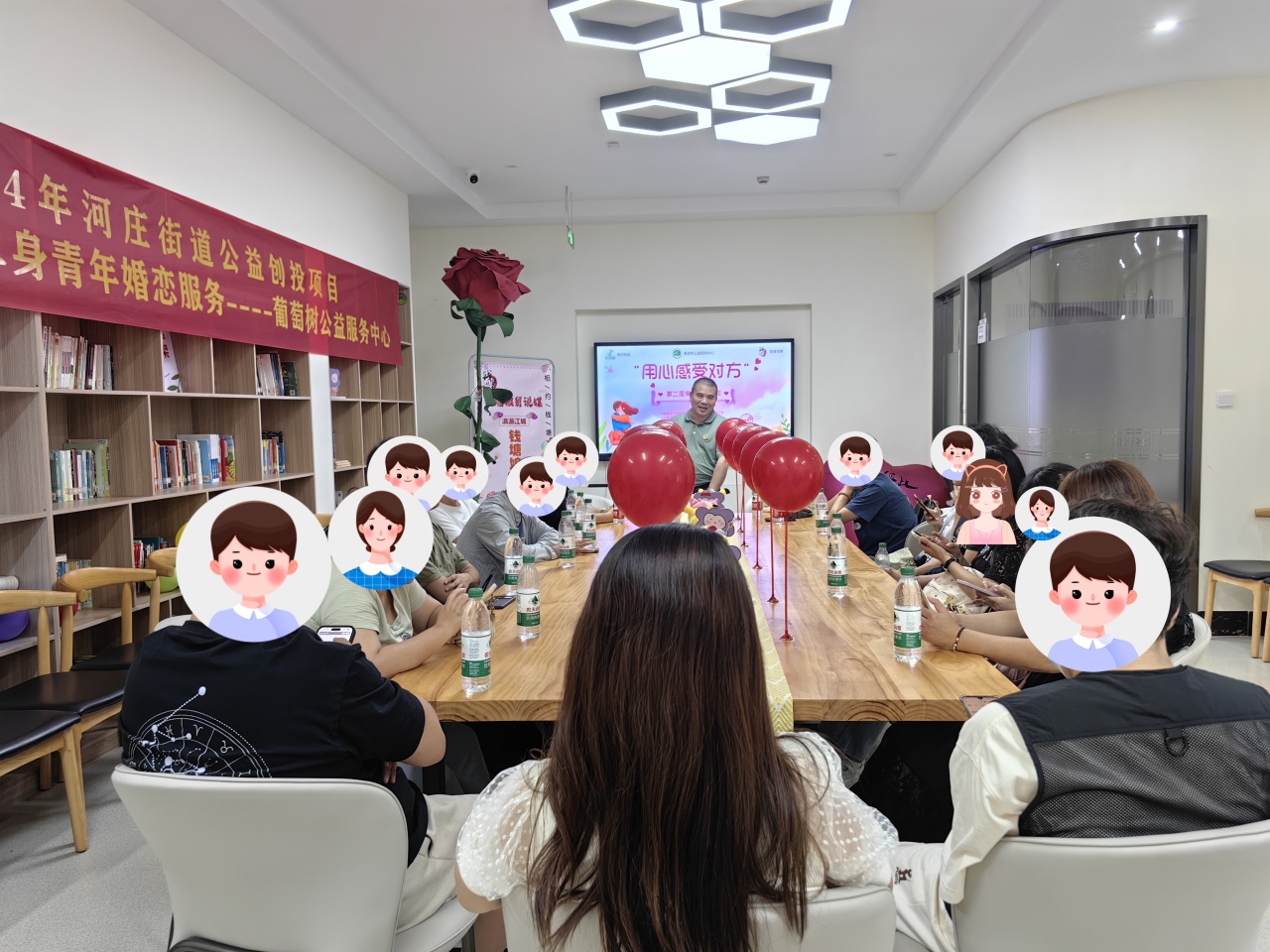 2024年9月21日,葡萄树公益服务中心依托“2024 年河庄街道‘浪漫江城’公益创投项目”开展了“用心感受对方”单身青年沙龙活动,此次活动有21位单身男女参加。